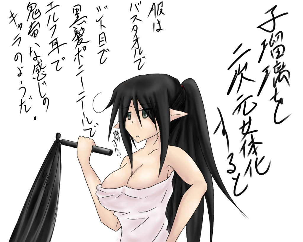 子瑠璃を二次元女体化すると『服はバスタオルで、ジト目で黒髪のロングのポニーテールでエルフ耳で鬼畜な感じのキャラ』のようだ 。