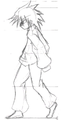 まず描くのが簡単なクロスでプロトタイプを描いているわけですが、歩行アニメーションで12枚描かなきゃならんのですぅ(何かあの緑の人形風)